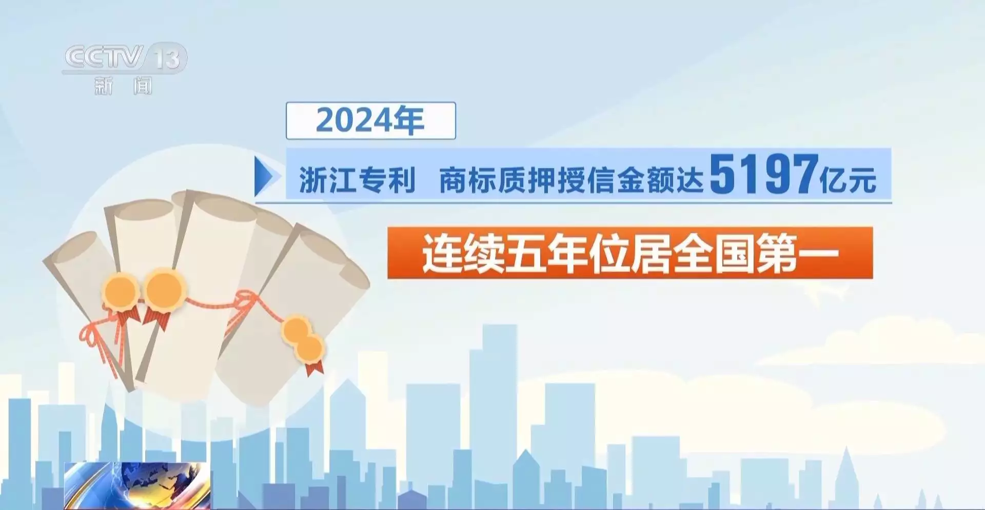 据了解,浙江累计登记数据知识产权2.2万件,实现运用金额近77亿元。2024年专利、商标质押授信金额达5197亿元,连续五年位居全国第一。